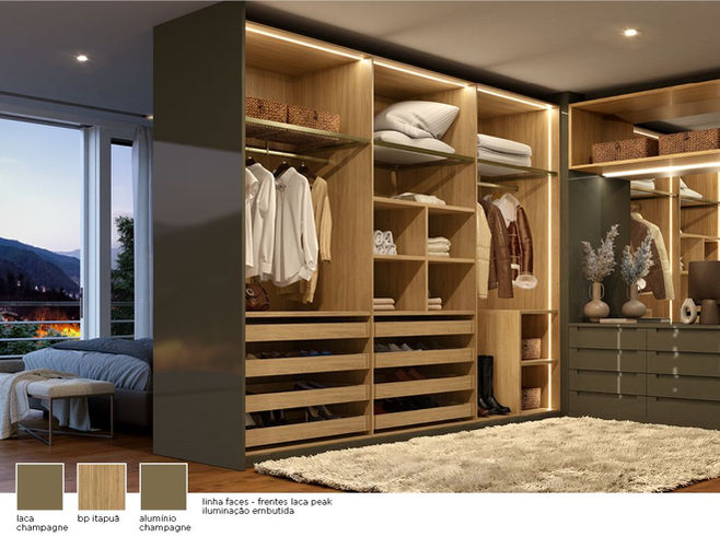 O dormitório é o cantinho para descansar, ler e repor as energias. Também é o local da casa para guardar com todo zelo e organizar os itens pessoais, as roupas, os calçados e inúmeros acessórios. Os projetos de roupeiro, closet ou área de vestir imprimem personalidade e usabilidade.